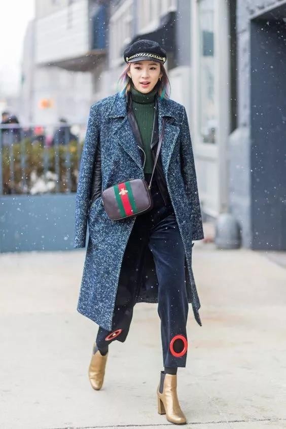 在珍珠飾品或貝雷帽的點綴下更顯文雅。