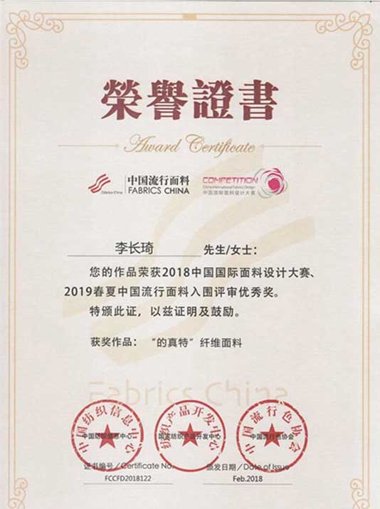 ▼國際面料設計大賽入圍評審優秀獎