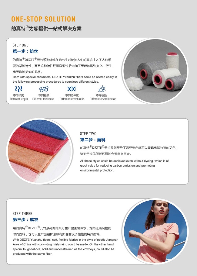 正是這些優異的技術特性使得“的真特”竹節絲不但可以做罩衣類產品,而且貼身內衣同樣可以適用。“的真特”竹節絲可以像FDY一樣貯存。